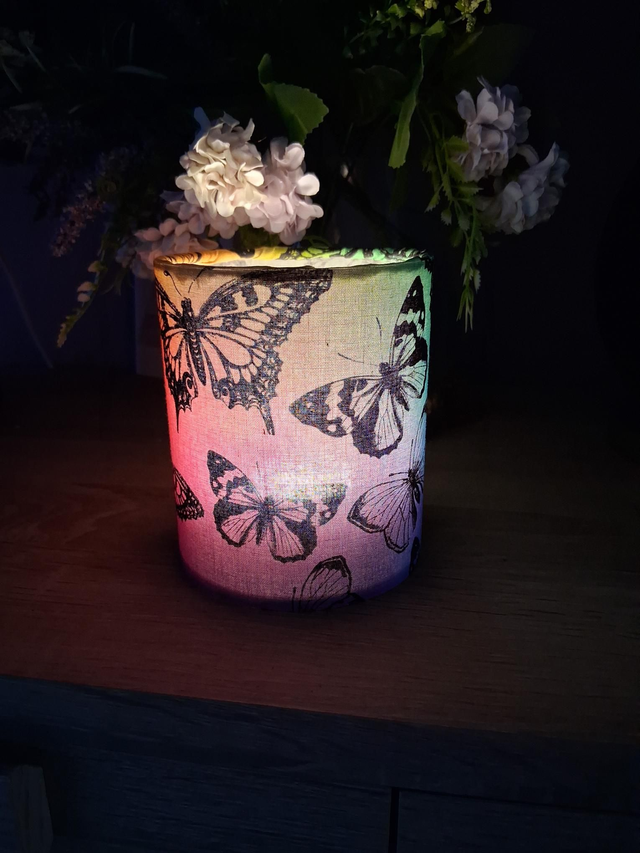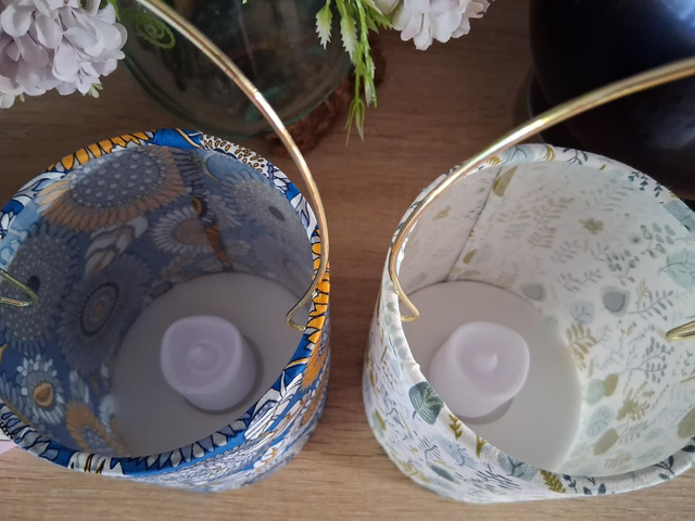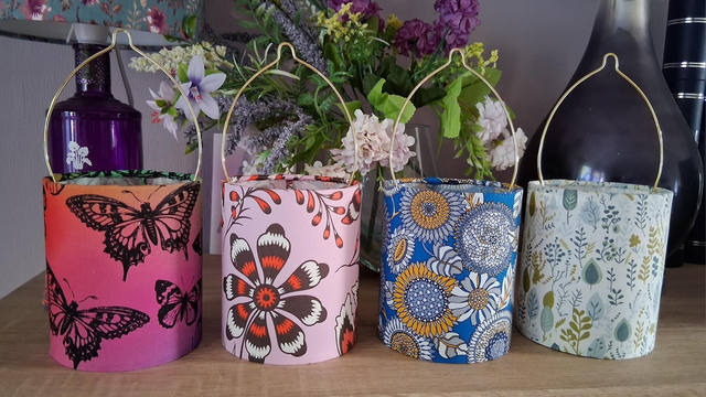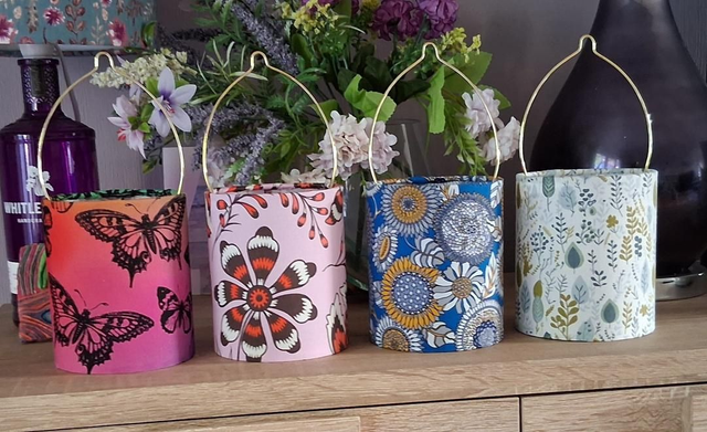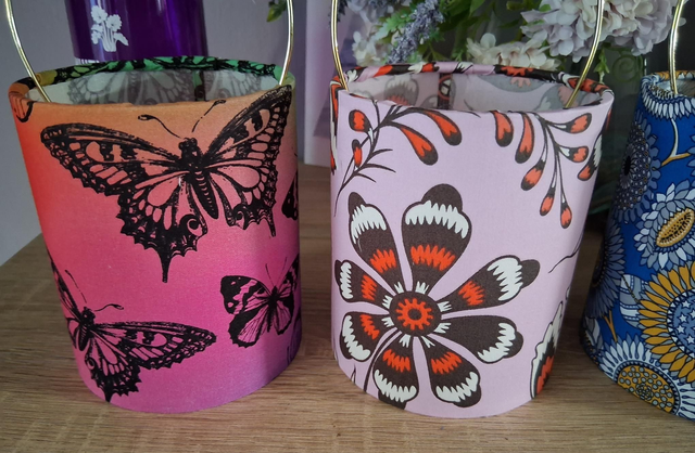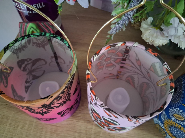 Handmade fabric tea light lanterns.